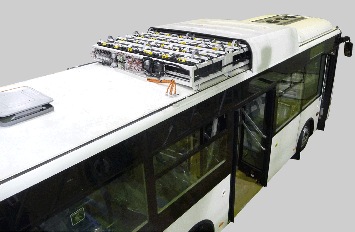 The electric bus manufacturers used to locate the lithium ion battery cell pack on the rear bottom and the top roof of electric bus.